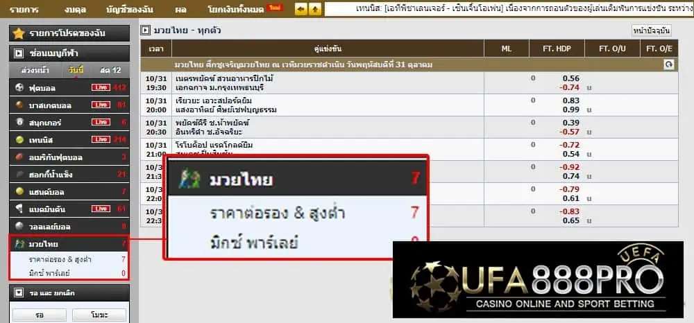 - ก่อน เดิมพัน มวยสเต็ป ให้ทำการล็อกอินกับ ทางเข้า เดิมพันกับยูฟ่าเบท ก่อน หลังจากนั้นให้มองฝั่งซ้ายมือและเลือกเมนูมวยไทย